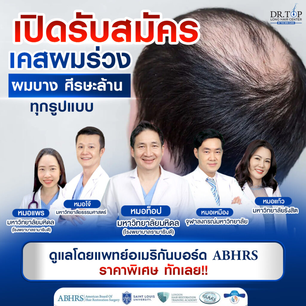 คลินิกปลูกผมยาว Long Hair Center มีทุกเทคนิคในการรักษาทั้ง แบบปลูกผม และไม่ต้องปลูกผม ดูแลโดยทีมแพทย์อเมริกันบอร์ด นำโดย "หมอท็อป" นพ.ณัทธร นฤปเวศม์